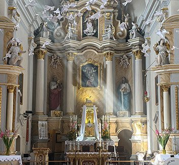 W sanktuarium znajduje się ołtarz z relikwiami krwii św. Jana Pawła II